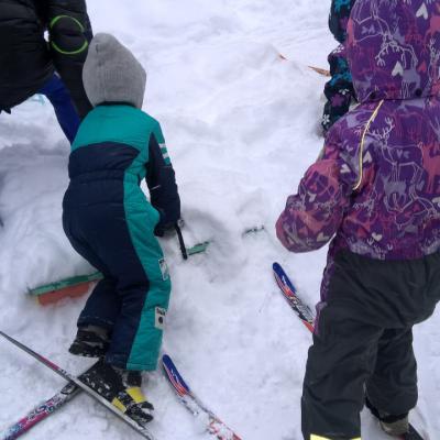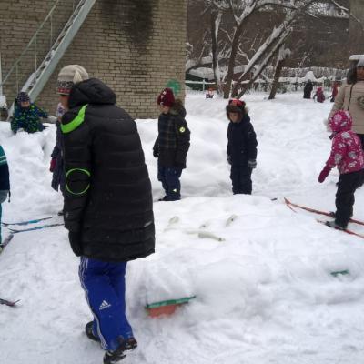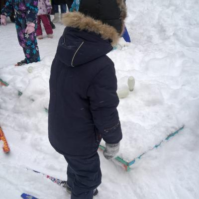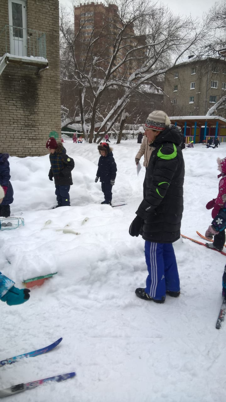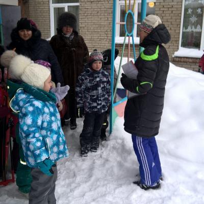- Кто быстрее – участники на одной лыже без палочек бегут до отметки и обратно к финишу (кто первый придёт, вручается жетон).