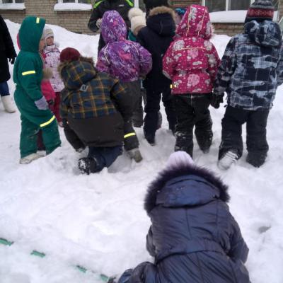 - Подвижная игра «Все в море». По большому кругу воткнуты лыжные палки на 1 меньше, чем количество играющих. Водящий ведет за собой участников в сторону от круга, в любой момент он может дать команду «Все на палубу». Все должны быстро вернуться и взяться за любую палку. Оставшийся без палки становится водящим.
